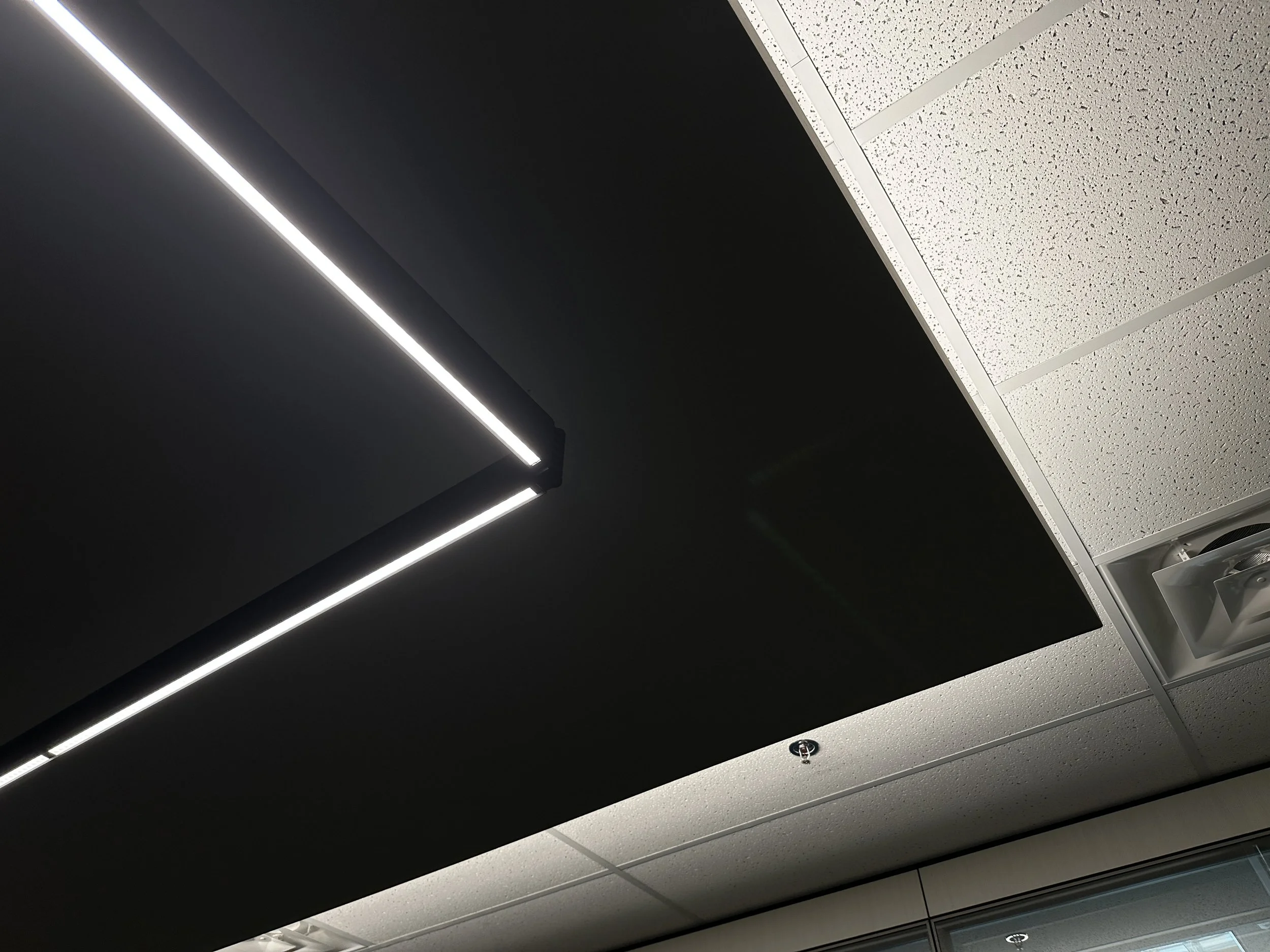 Modern Depth with Suspended Ceilings and Black-Painted Insulation Panels